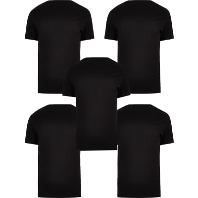 Black multipack of 5 slim fit tshirts River Island